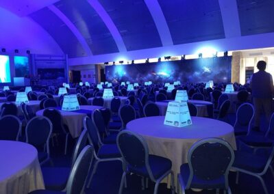 Pentru orice eveniment la care am fost „Solutions Partner”, am realizat proiecte speciale, menite să arate diversitatea soluțiilor pe care DPI Advertising le poate gândi, croi și implementa. De la panouri de afișaj – interactive sau simple – pentru diverse scopuri (cum ar fi afișarea scorurilor și participanților), la branding de scenă și diplome din plexiglas, până la produse versatile: cuburi din plexiglas folosite drept măsuțe sau standuri, desk-uri pentru speakeri, panouri din stiplex pentru mesajele conferințelor, tocătoare de lemn personalizate (în loc de diplome) și multe altele.